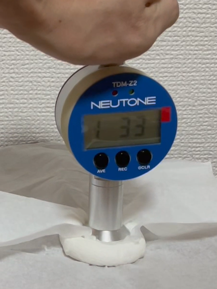 The hardness is measured using a “muscle hardness meter (digital display type muscle hardness meter TDM-Z2 (BT)) (2).”